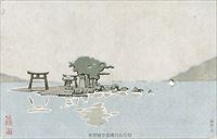 ![]() 湖上嫁が島の夕照 |